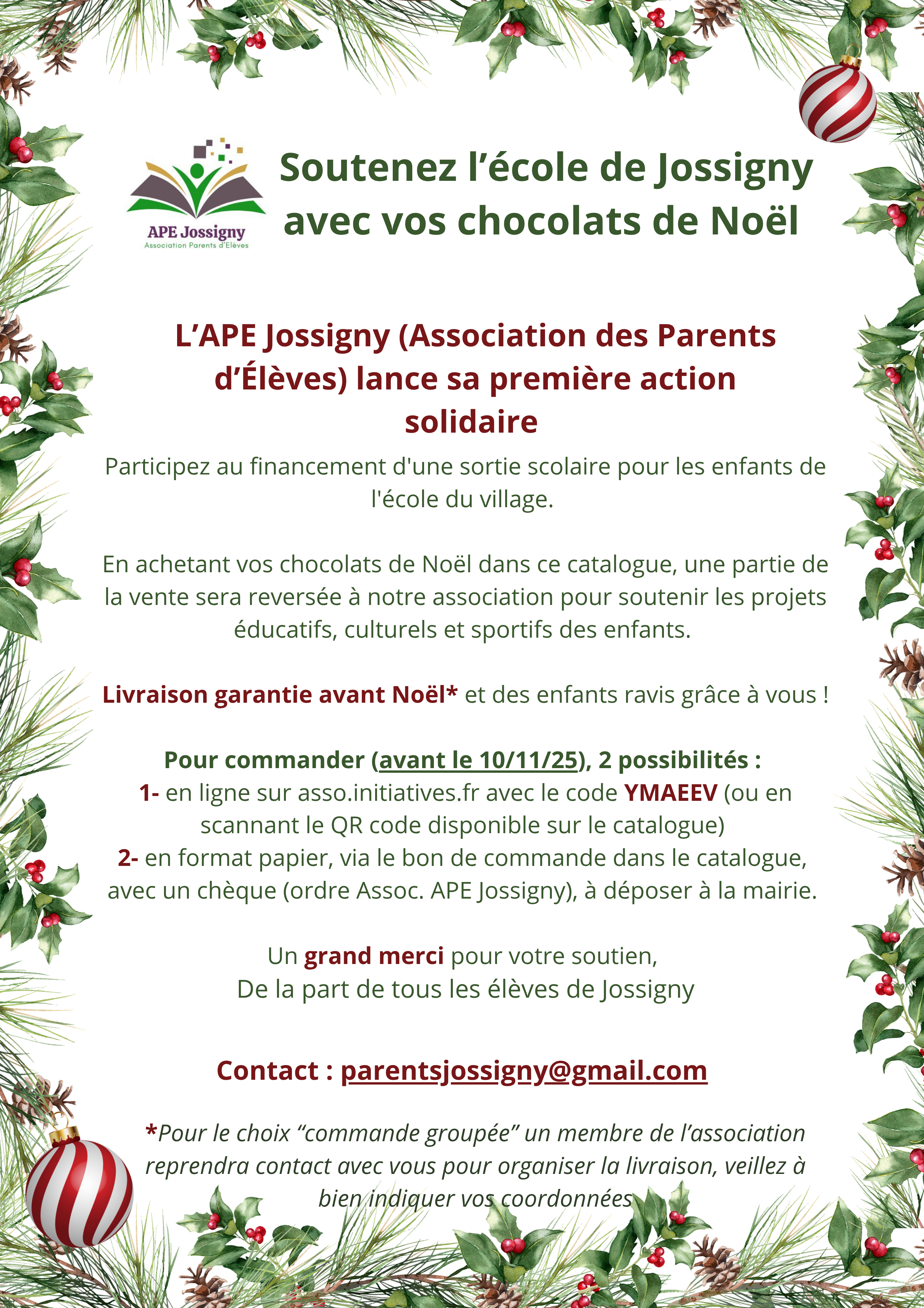 L’association des parents d’élèves de l’école organise une vente de chocolats. Voici la version numérique du flyer.